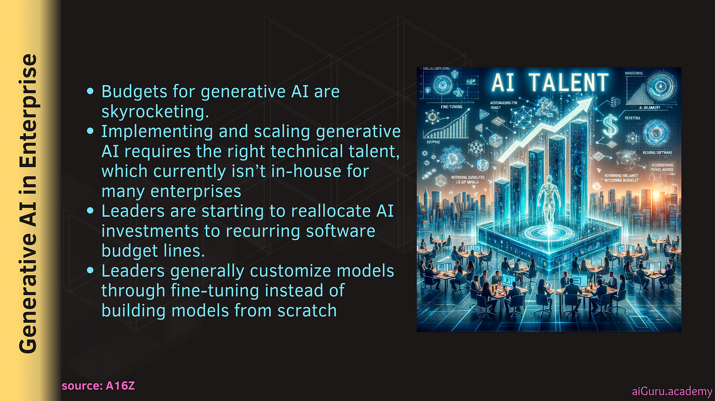 Remember the A16Z report came out couple of weeks ago where they said how enterprises (Fortune 500 and beyond) are building and buying the generative AI is changing. I discuss it at length in one of my YouTube video. But what does it mean for jobs and career? Here are the four points which I think are very relevant to the jobs and career: