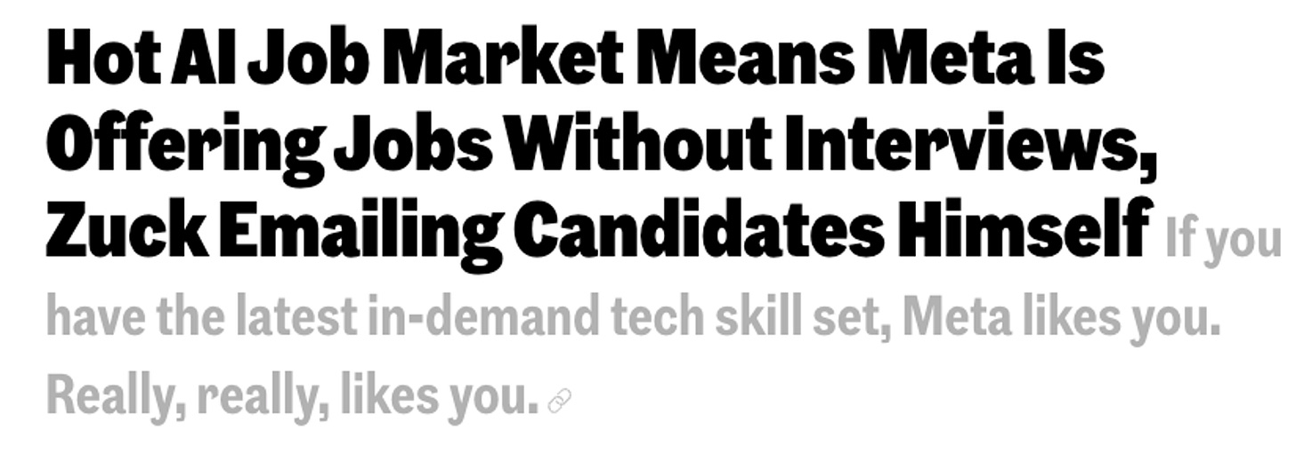 It's not just Zuck who is hiring. The entire hiring market in technology is shifting from traditional IT talents to pure play AI talent - don't trust me? Ask any headhunters. Better yet, take a look at this chart: